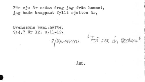 //// H //// För sju år sedan drog jag från hemmet, ' //// jag hade knappast fyllt sjutton år, i //// Svenssons saml.häfte, ^ //// 9:4,? Nr 12, s.11-12. ! //// ^^ ^ ^Yly . ^ ^^^^ i //// ! //// ! //// i //// ÅBO. ////
