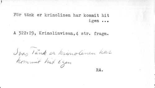 //// För tänk er krinolinen har kommit hit ^ //// igen ... //// A 322:29, Krinolinvisan,4 str. fragm. //// * //// . //// i ////