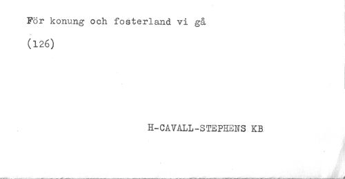 //// För konung och fosterland vi gå ' //// (126) //// H-CAVALL-STEPHENS KB ////