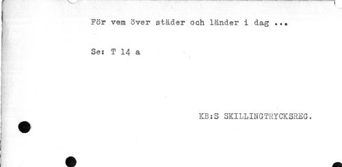 //// ') För vem över städer och länder i dag ..+ //// ! Se: T 14 a //// t //// t //// ! KB:S SKILLINGTRYCKSREG. ////