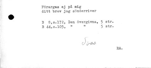 //// B 8,s.l72, Den övergivna, 5 str. //// B 44,s.105, " " 5 str. //// ! ^' //// RA. //// ! //// j . ////