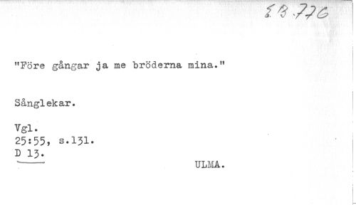 //// i //// i //// "Före gångar ja me bröderna mina." //// t //// i //// Sånglekar. //// Vgl. //// 25:55, s.131. //// D 13. //// *--ULMA. //// t //// t ////