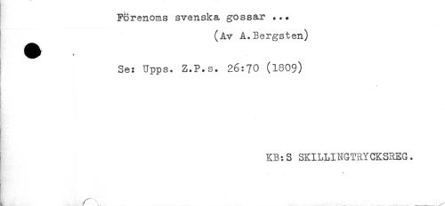 //// Forenoms svenska gossar ... //// (Av A.Bergsten) //// Se: Upps. Z.P.s. 26:70 (1809) //// KB:S SKILLINGTRYCKSREG. ////