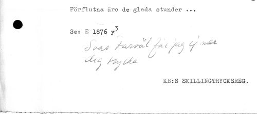 //// Förflutna äro de glada stunder ... //// ^ Se: E 1876 y^ //// KB:S SKILLINGTRYCKSREG. //// . //// . //// L____ _____ __ _____ ___ ////