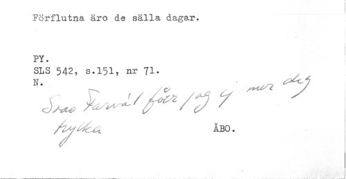 //// I //// i //// Förflutna äro de sälla dagar. //// i //// < //// i //// PY. //// SLS 542, s.151, nr 71- //// N. - ^ ^^ //// ' .. ÅBO. ////
