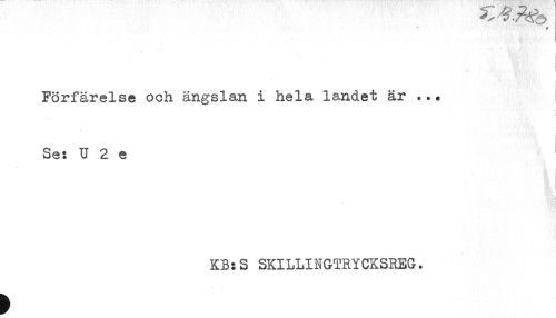 //// Förfärelse och ängslan i hela landet är ... //// t //// Se: U 2 e //// KB:S SKILLINGTRYCKSREG. ////