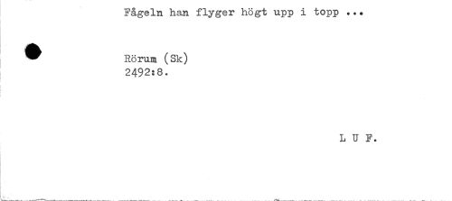 //// Fågeln han flyger högt upp i topp ... //// ^ Rörum (Sk) //// 2492:8. //// ! //// L U F. //// ! **.. ////