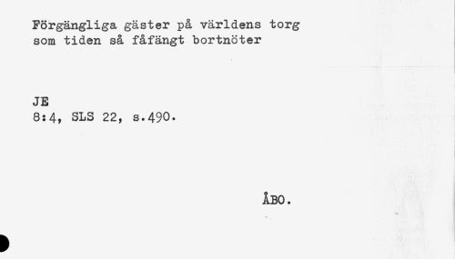 //// Förgängliga gäster på världens torg //// som tiden så fåfängt bortnöter //// JE //// 8:4, SLS 22, s.490. ////