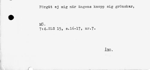 //// Förgät ej mig när ängens knopp sig grönskar, //// HÖ. //// 7:4.SLS 15, s.16-17, nr.7. //// ÅBO. //// . r', . ___ ___- ////