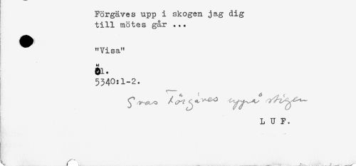 //// Förgäves upp i skogen jag dig //// till mötes g&r ... //// "Visa" //// M //// 01. //// 5340:1-2. //// L U F. //// ^ ^ '. - .....- ; ... ' . . ' _ ^ ////