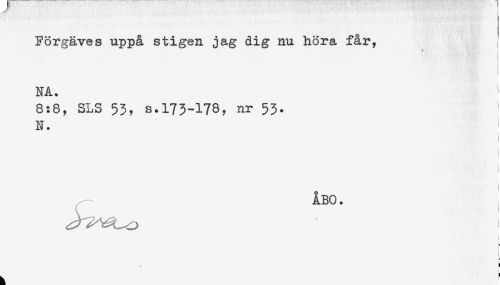 //// Förgäves uppå stigen jag dig nu höra får, //// * . . ' ' - //// NA. //// 8:8, SLS 53, s.173-178, nr 53. //// N. //// ÅBO. ////