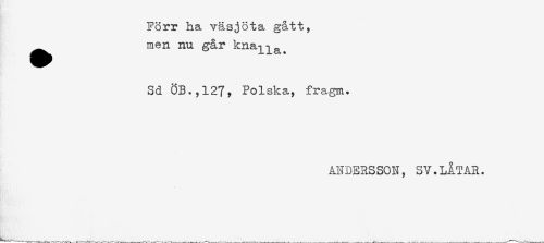 //// Förr ha väsjota gått, //// ^^ men nu går //// Sd ÖB.,127, Polska, fragm. //// ANDERSSON, SV.LÅTAR. ////