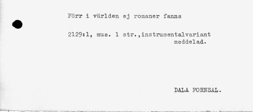 //// Förr i världen ej romaner fanns //// 2129:1, mus. 1 str.,instrumentalvariant //// meddelad. //// DALA FORNSAL. ////