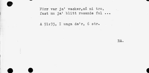 //// Förr var ja' vacker,må ni tro, //// S fast nu. ja' blitt rasande ful ... //// i ' ' ... //// A $1:93, I unga da'r, 6 str. //// RA. //// ! ////