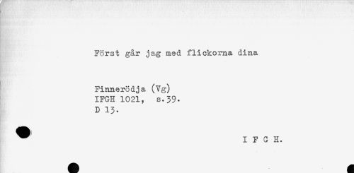 //// Först går jag med flickorna dina //// Finnerödja (Vg) //// IFGH1021, s.39. //// D 13. //// ^ I F G H. ////