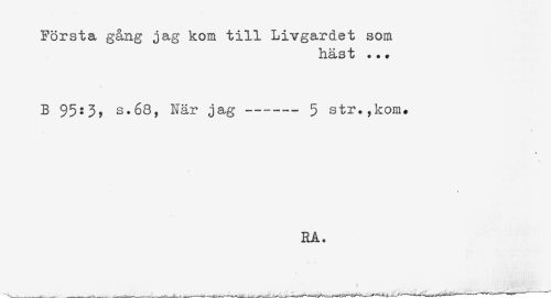 //// Första gång jag kom till Livgardet som //// häst ... //// B $5:3? s.68, När jag ----- 5 str.,kom. //// * //// RA. ////