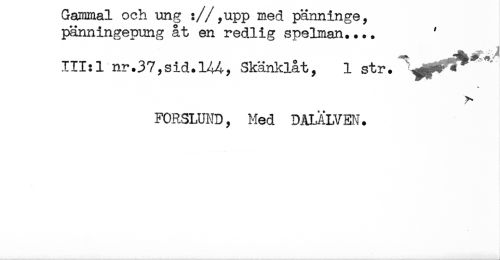 //// pänningepung åt en redlig spelman.... //// 111:1 nr.37ySid.144-, Skänklåty 1 str. ^^^ //// FORSLUND y Hed DALÄLVEN. ////