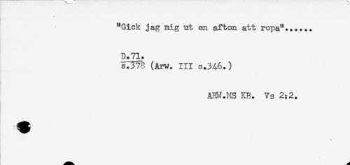 //// "Gick jag mig ut en afton att ropa"...... //// D.71. //// s?57ä (Arw. III s.346.) //// ARW.MS KB. Vs 2:2. //// $ //// } ////
