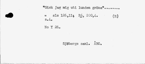 //// "Gick jag mig uti lunden gröna"... //// = sls 126,11; R6, 200,4. (R) //// s.4* //// j //// No Y 26. //// i //// h //// t //// f' //// Sjöbergs saml. ABC. ////