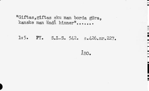 //// "Giftas,giftas sku man börda göra, ; //// kanske man ändå hinner"....... //// 1:5. PY. S.L.3.542. s.426.nr.227. ^ //// < //// ABO. ^ //// i //// < //// L //// : ////