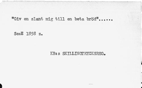 //// "Giv en slant mig till en beta bröd"...... //// Se:E 1858 z. //// ! //// KB: s SKILLINGTRYCKSREG. //// i //// i //// ; //// H //// h - ////