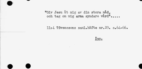 //// "Giv Jesu åt mig av din stora nåd, //// och tag om mig arma syndare vård"..... //// 11:4 ?Svenssons saml.häfte nr.29. s.64-66. //// ÅBO: //// ! //// ! //// } ////