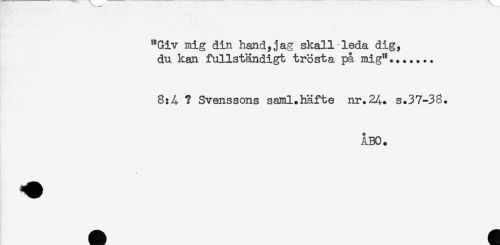 //// "Giv mig din hand,jag skall leda dig, //// du kan fullständigt trösta på mig"....... //// 8:4 ? Svenssons saml.häfte nr.24. s.37-38. //// ÅBO. ////