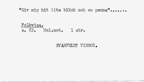 //// "Giv mig hit lite bläck och en penna"....... //// Folkvisaj. //// s. 83. Mel.not. 1 str. //// SVANFELDT VISBOK. ////