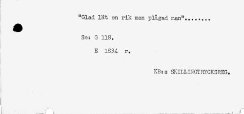//// "Glad lät en rik men plågad man"... //// < //// Se: G 116. //// E 1834 r. //// ! //// t //// KB:s SKIHINGTRYCKSREG. //// i //// ) //// //// /i. //// f ////