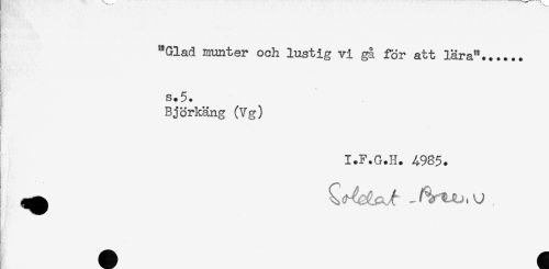 //// "Glad munter och lustig vi gå för att lära"...... //// s.5. //// Björkäng (Vg) //// I.F.G.H. 4-983. //// t //// f. ////