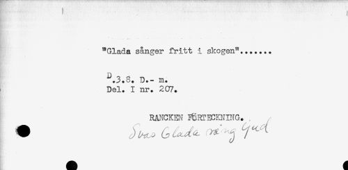 //// "Glada sånger fritt i skogen"....... //// ^.3.8. D.- m. //// Del. I nr. 2C7. //// RANCKm ^iRTECMING. ////