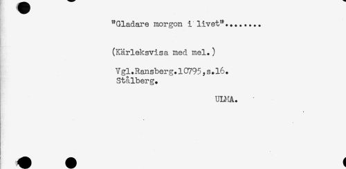 //// "Gladare morgon i livet"... //// (Kärleksvisa med mel.) //// V gl.Ransberg.1C795,s.16. //// Stålberg. //// ULMA. //// t ////