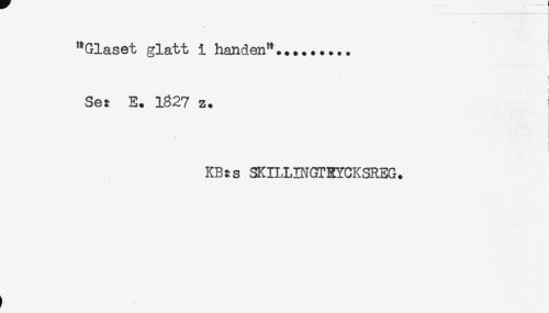 //// "Glaset glatt i handen".....! //// i //// t //// Set E. 1827 z. //// ! //// KBts SKILLINGTRYCKSREG. ////