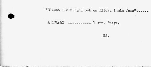 //// "Glaset i min hand och en flicka i min famn"...... //// Ä 170:62 ----- 1 str. fragm. //// RA. ////