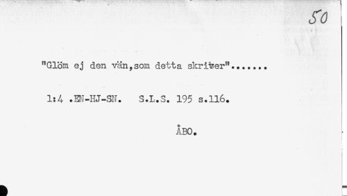 //// "Glöm ej den vän,som detta skrider"....... //// 1:4 .EN-HJ-SN. S.L.S. 195 s.116. //// ÅBO. //// ) ////