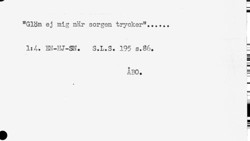 //// ... . v , . j //// "Glöm ej mig när sorgen trycker"...... //// * * //// 1:4. EN-HJ-SN. S.L.S. 195 s.86. = //// ÅBO. = //// ! //// r* //// ! //// ! //// g ////