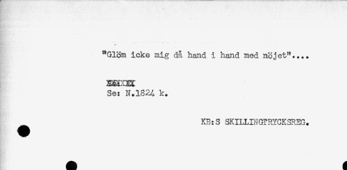 //// t* //// "Glöm icke mig då hand i hand med nöjet".... //// Se: N.1S24 k. //// KB:S SKILUNGTRYGKSREG. //// ^^^^^^''' //// g. ////