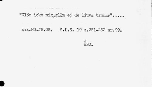 //// -* * * " * " "--- - . - //// * //// "Glöm icke mig,glöm ej de ljuva timmar".....! //// ! //// i //// A:4.^.JE.0R. S.L.-S. 19 s.281-282 nr.99. ! //// ÅBO. //// ! //// < //// < //// t //// t //// - ////