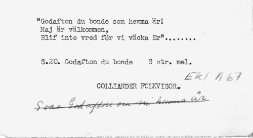 //// < //// i //// "Godafton du bonde som hemma äri //// Maj är välkommen, //// Blif inte vred för vi väcka Er"... //// S.2C. Godafton du bonde 8 str. mel. //// COLLIANDER FOLKVISOR^ //// *-____., __.. __.___'--%......__i!----- .^.-.A- --^ . ^____-----L...*..,- -- -----n-:----^ ----^ ---.--- ////