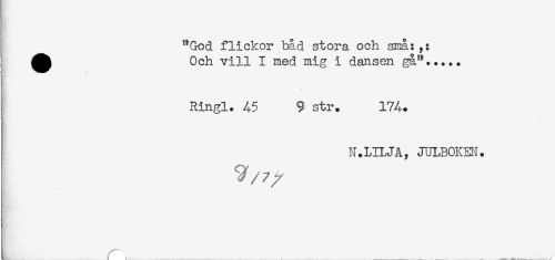 //// **God flickor båd stora och små: //// ^ Och vill I med mig i dansen gå"..... //// Ringl. 45 9- str. 17A. //// N.LILJA, JULBOKS-I. ////