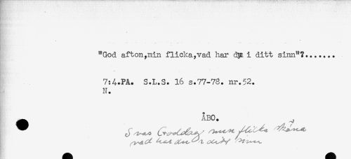 //// "God afton,min flicka,vad kar dpi i ditt sinn"?...... //// 7:A.PA. S.L.S. 16 s.77-78. nr.52. //// N. //// ^ ÅBO. ^ ////