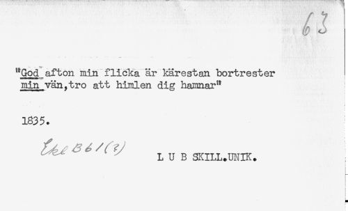 //// ' A *. //// "God afton min flicka är kärestan bortrester //// min vän.tro att himlen dig hamnar" ! //// , * f //// 1835. //// L U B SKILL.UI^IK. ; //// i //// < //// < //// i //// ! //// < //// L ////
