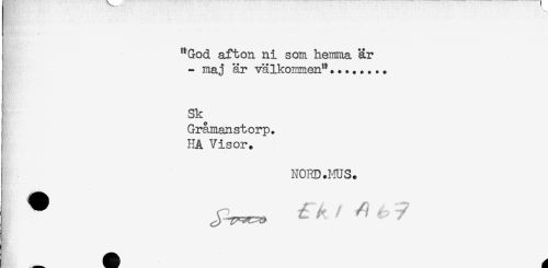 //// i "God afton ni som hemma är //// - maj är välkommen"... //// j Sk //// i Gråmanstorp. //// [ HA Visor. //// I NORD .ms. ////
