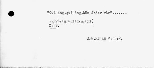 //// ^^ "God dag,god dag,kär fader vår"....... //// s.376.(Arw.III.s.25l) //// D.29. //// ARW.MS KB Vs 2:2. //// ...... . ^ .., ...... . „. ^ , ////
