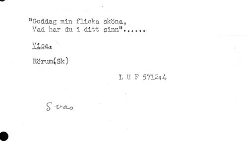 //// "Goddag min flicka sköna, //// Vad har du i ditt sinn"...... //// Visa. //// Rörum(Sk) //// L U F 5712:4 ////