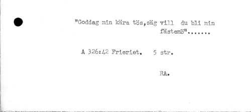//// ^ "Goddag min kära tös,säg vill du bli min //// fästemH"....... //// ! //// A 326:42 Frieriet. 5 str. //// RA. //// ( //// t //// - r ...^ ////
