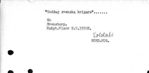 //// "Goddag svenska krigare"....... //// Sk //// Svenstorp. //// Mskpt.Visor E.U.35S28. //// NORD.MUS. //// . ////