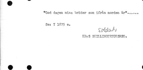 //// "God dagen mina bröder som ifrån norden är"...... //// Se: Y 1875 e. //// KB:S SKIILDIGTRYCKSREG. ////