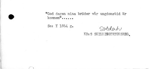 //// ^^ "God dagen mina bröder vår ungdomstid är //// kommen"...... //// Se: Y 1864 g. //// KB:S SKILLINGTRYGKSREG. ////