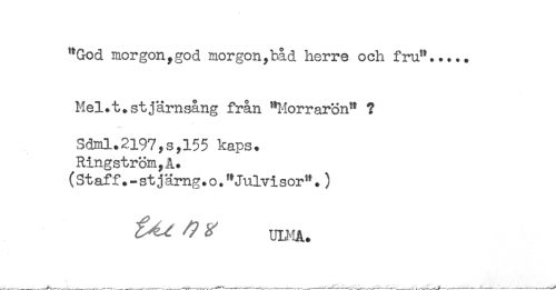 //// "God morgon,god morgon,båd herre och fru"..... //// Mel.t.stjärnsäng från "Morrarön" ? //// Sdml.2197,s,155 kaps. //// Ringström,å. //// (St aff.-st j ärng.o."Julvi sor".) ////